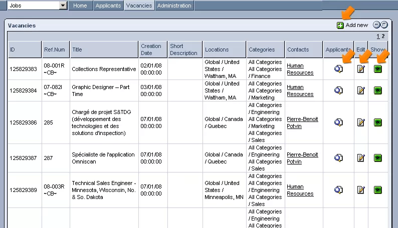 "Applicants" icon in the row of the "Vacancies" table corresponding to the position in question.